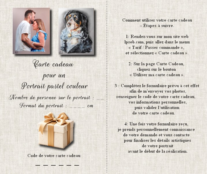 / Carte cadeau portrait pastel couleur